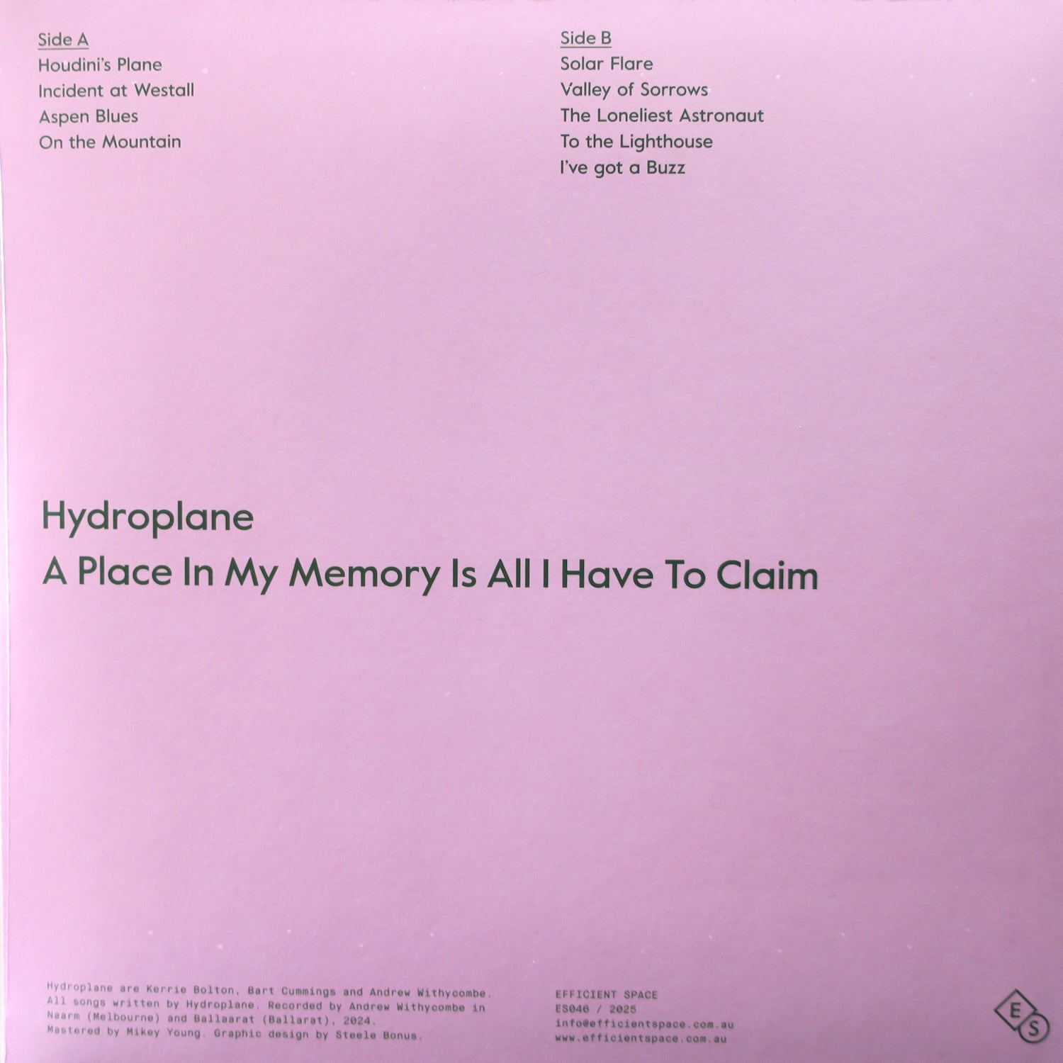 HYDROPLANE 'A Place In My Memory Is All That I Have To Claim' Vinyl LP