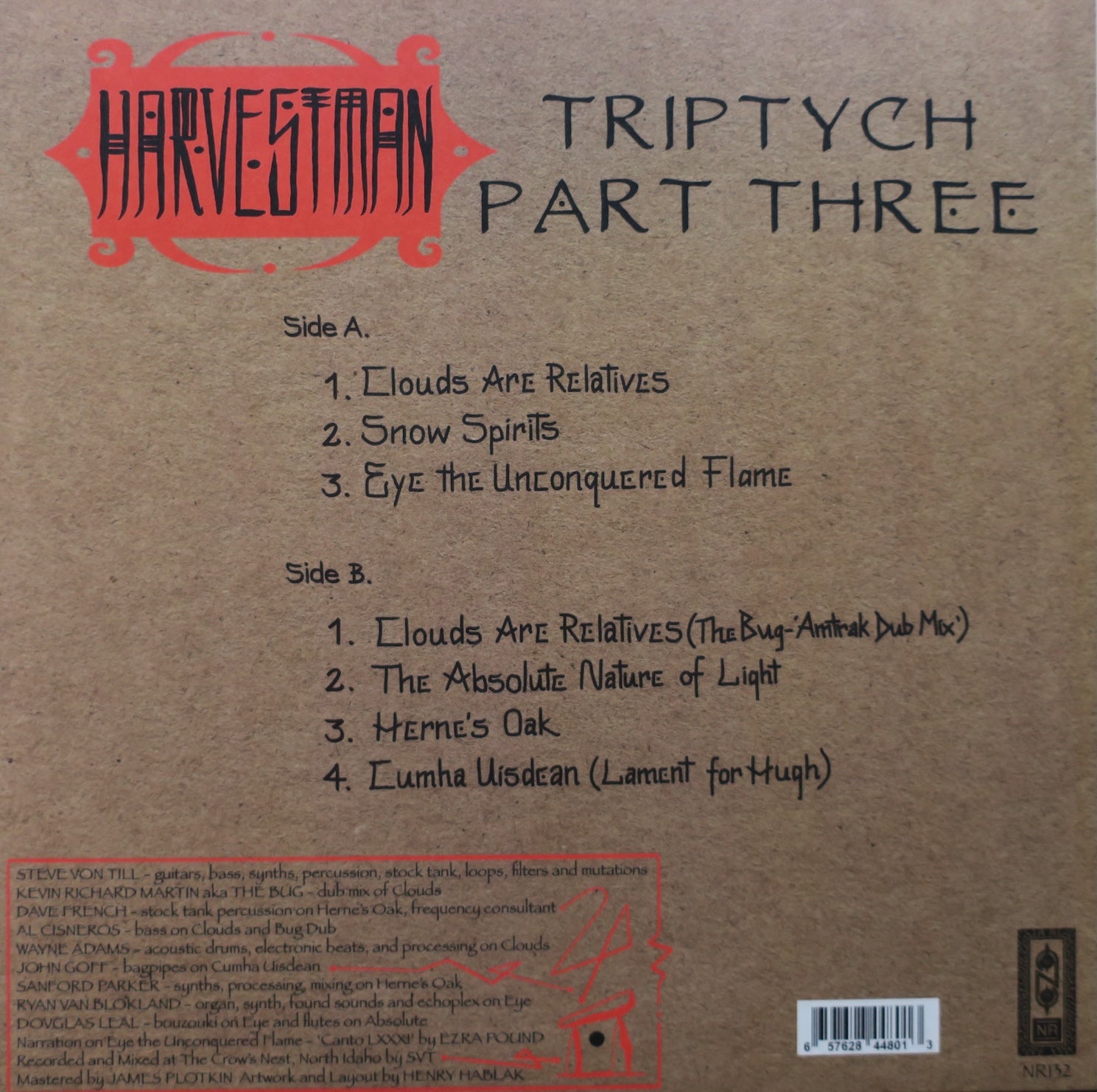 HARVESTMAN 'Triptych: Part Three' CLEAR/BLACK Vinyl LP (Steve Von Till from Neurosis)
