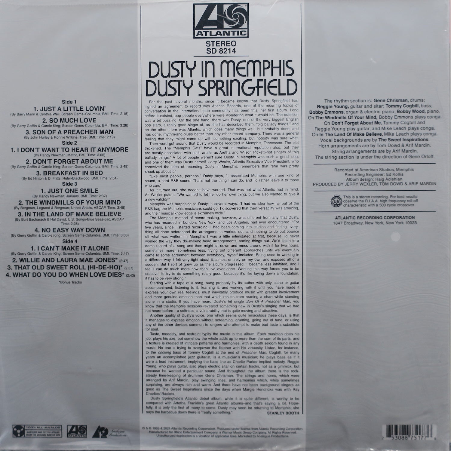 DUSTY SPRINGFIELD 'Dusty In Memphis' Analogue Productions 45rpm 180g Vinyl 2LP