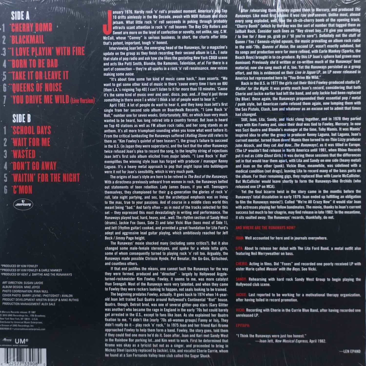 RUNAWAYS 'Best Of' Remastered Vinyl LP