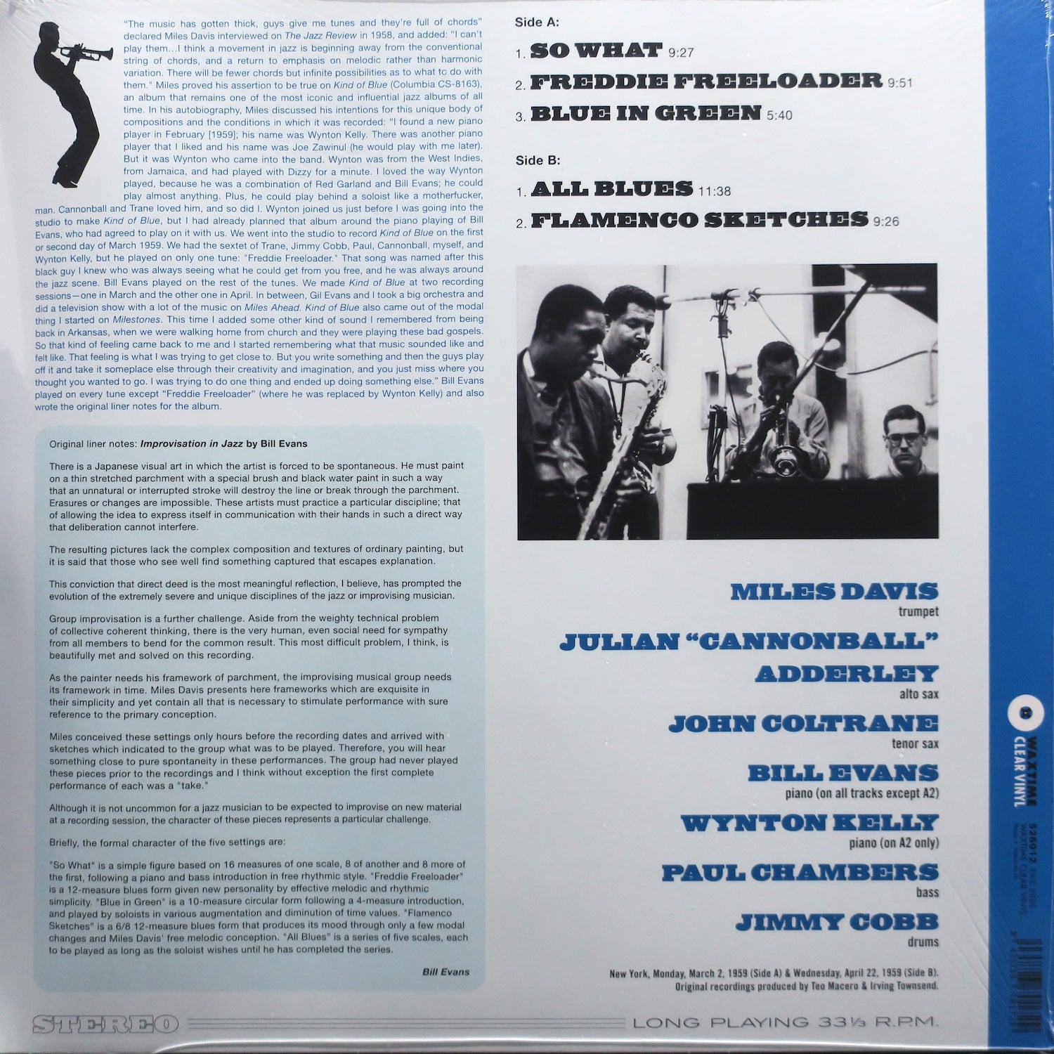 MILES DAVIS Kind Of Blue' 180g CLEAR Vinyl LP