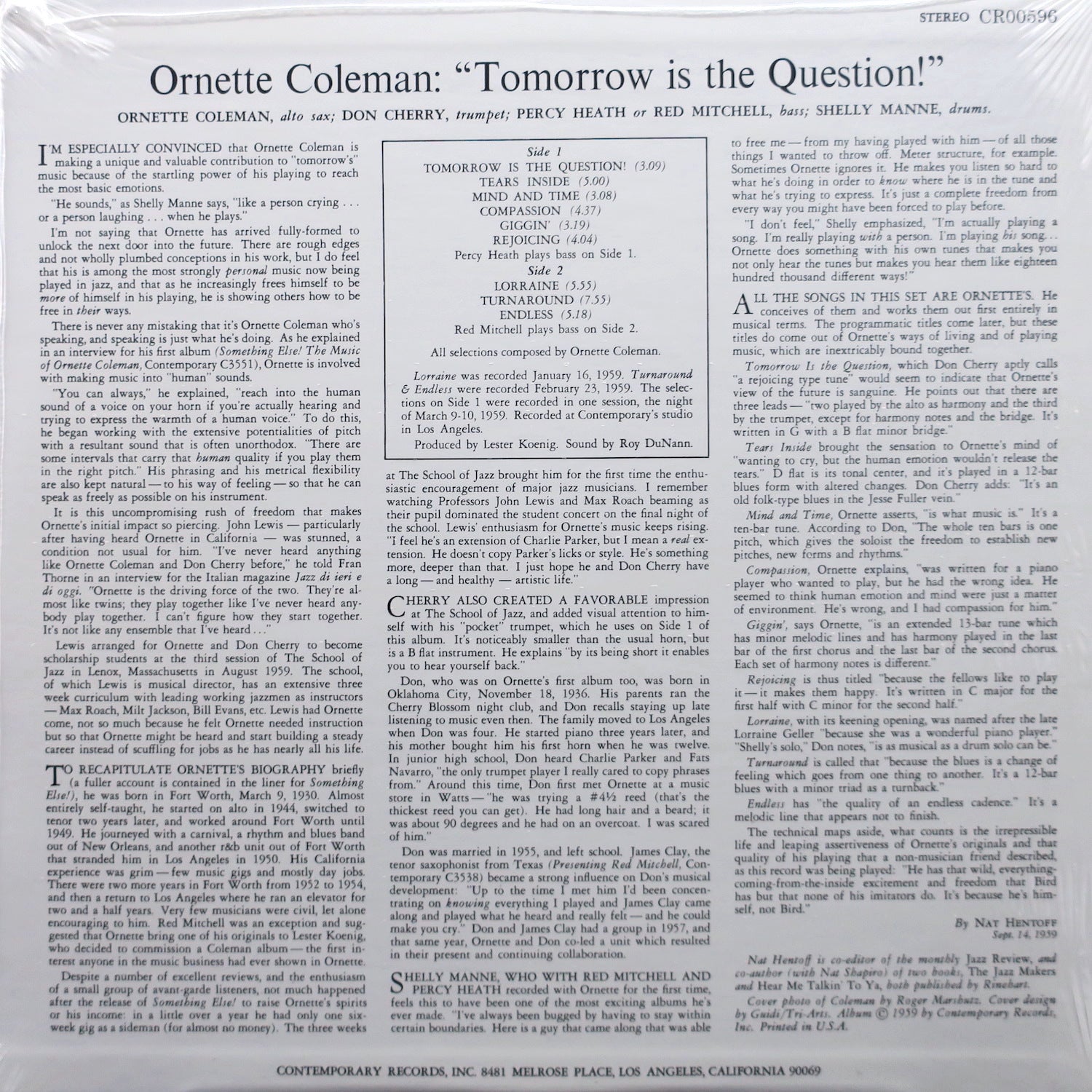 ORNETTE COLEMAN 'Tomorrow Is The Question' Craft 180g Vinyl LP