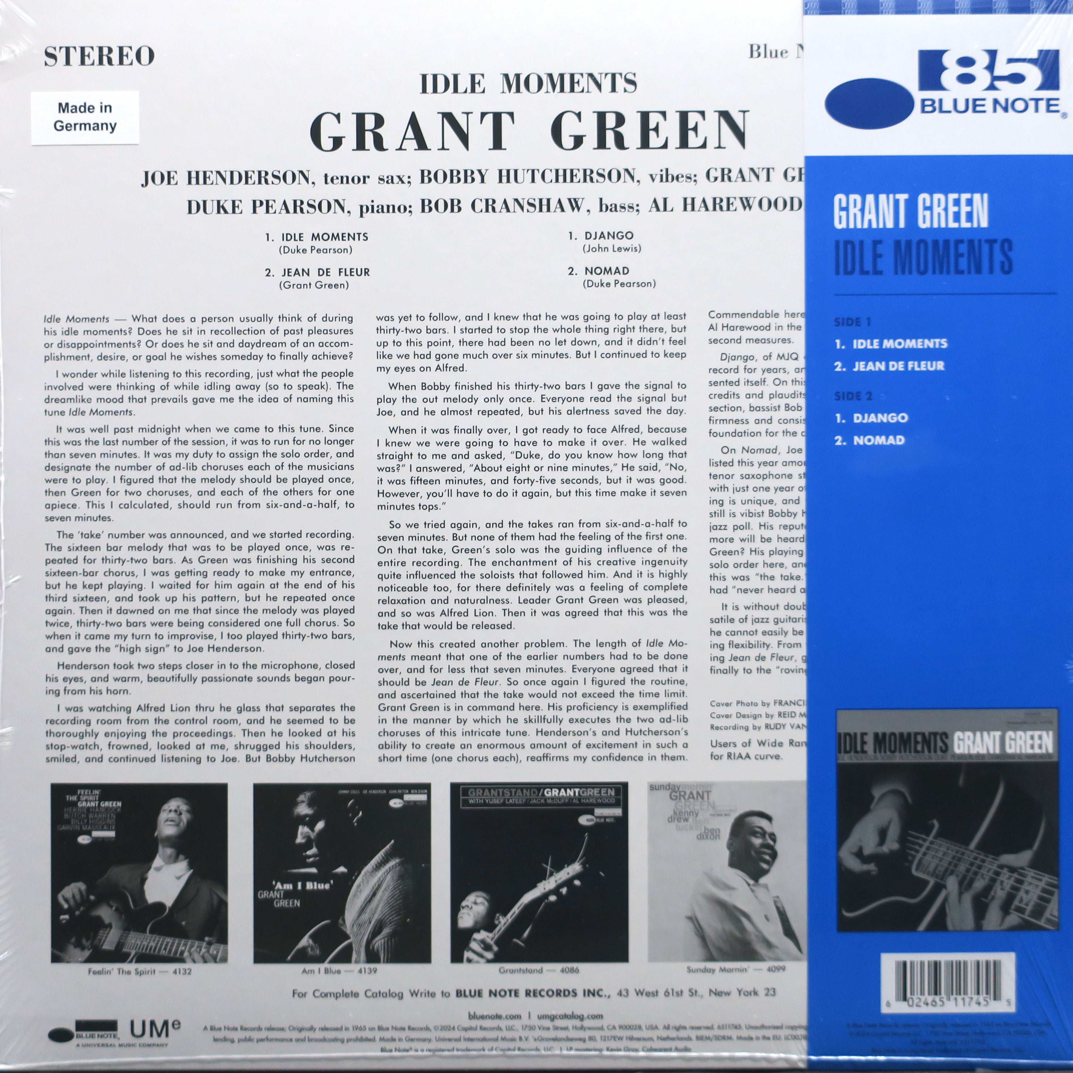 GRANT GREEN 'Idle Moments' Blue Note 180g BLUE Vinyl LP