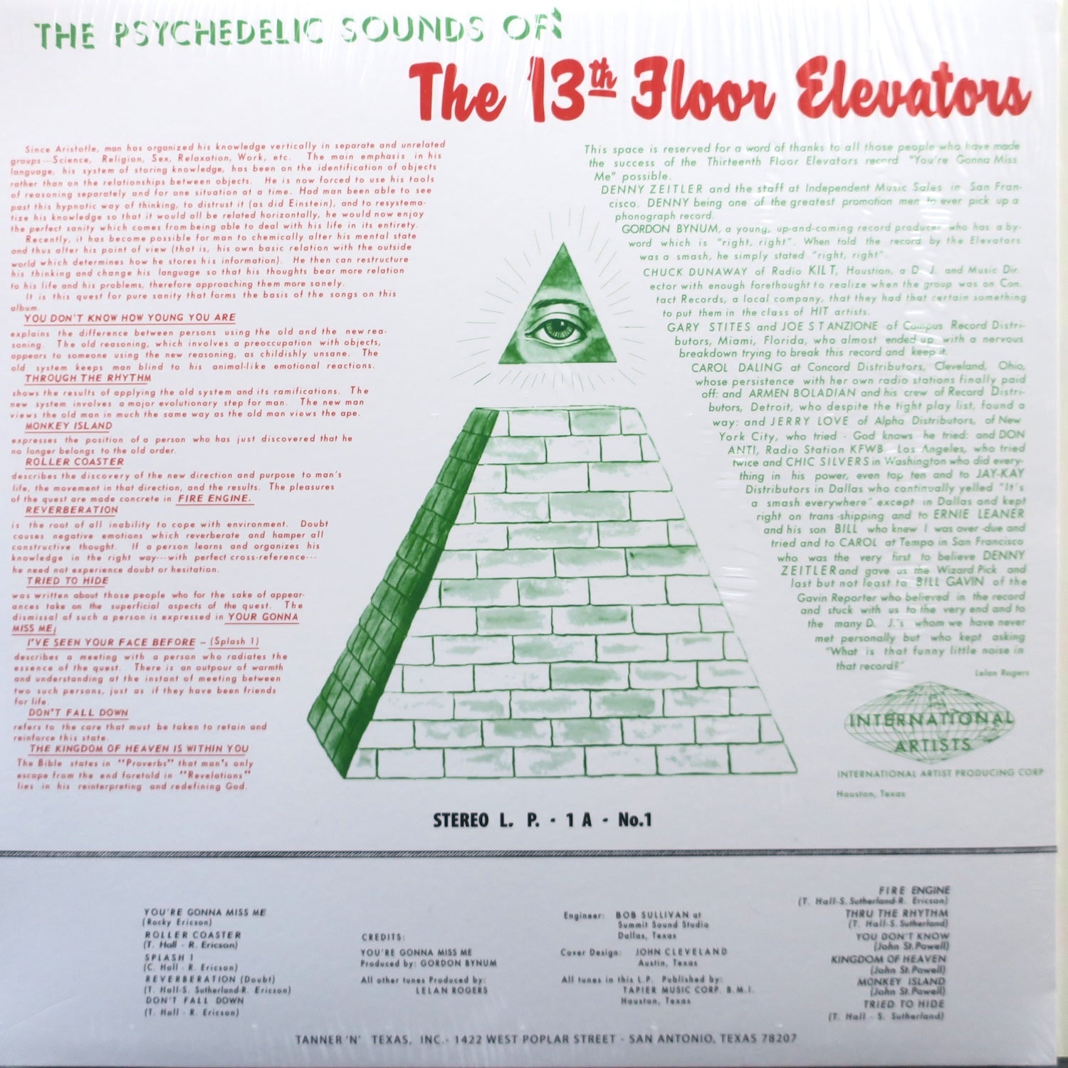 13TH FLOOR ELEVATORS 'Psychedelic Sounds Of' Vinyl LP