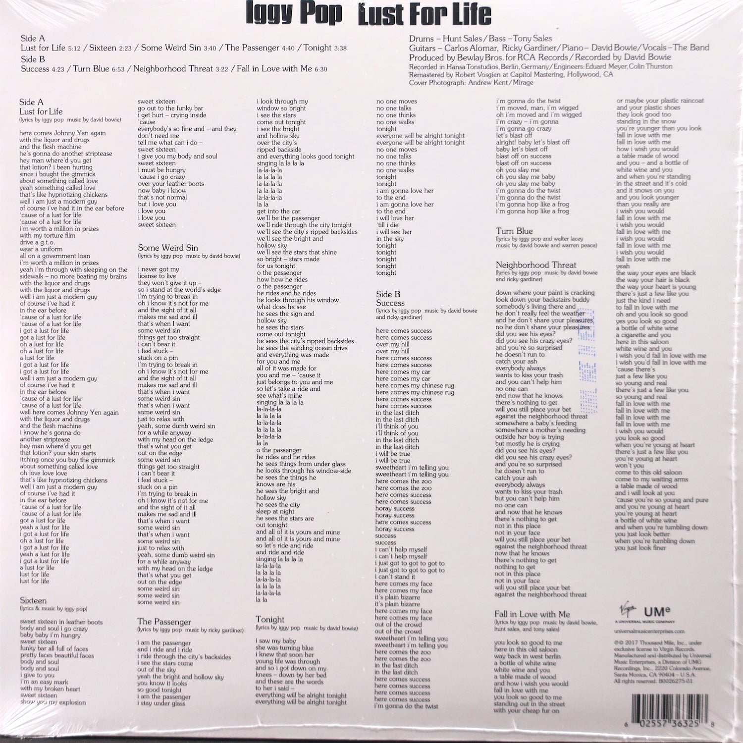 IGGY POP 'Lust For Life' 180g Vinyl LP