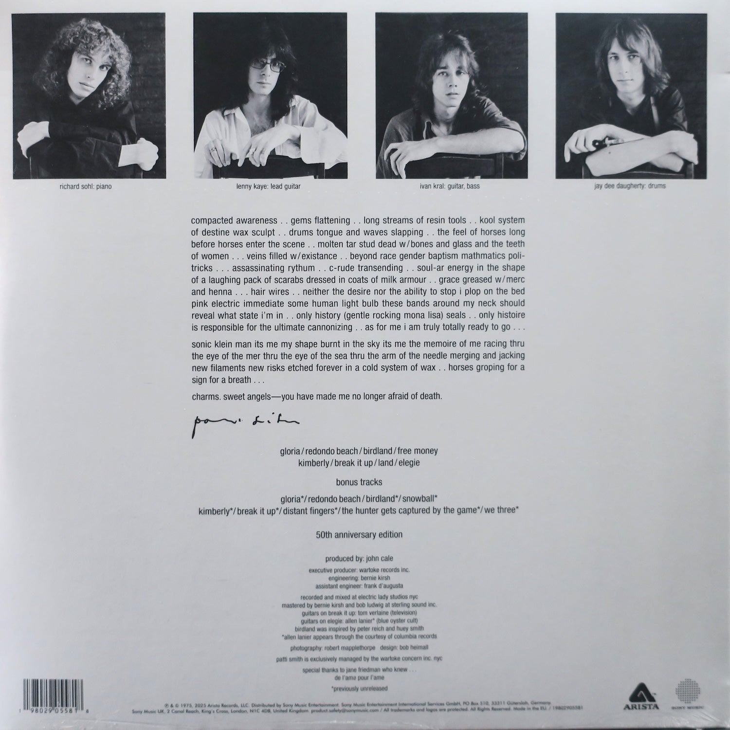 PATTI SMITH 'Horses' 50th Anniversary Remastered Vinyl 2LP