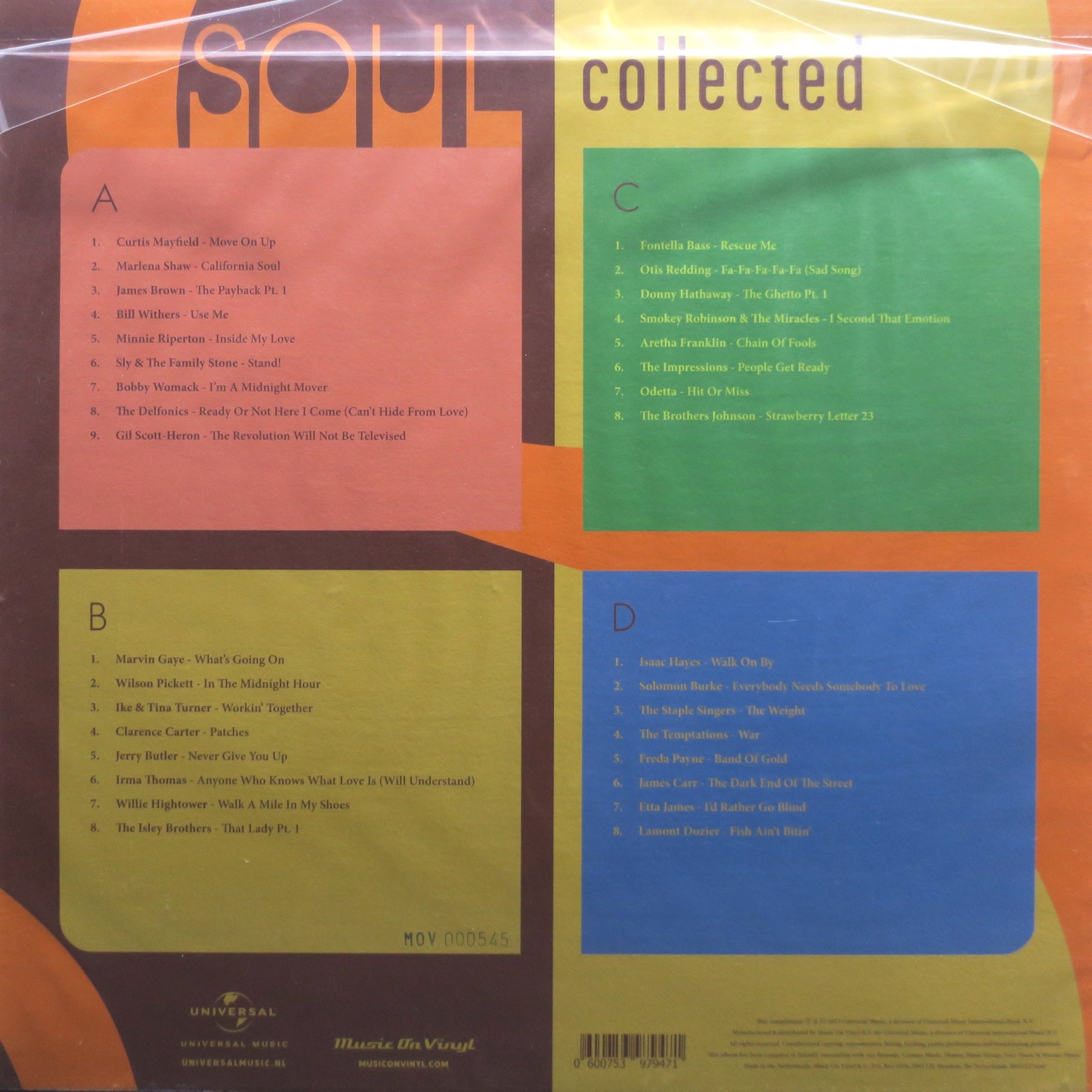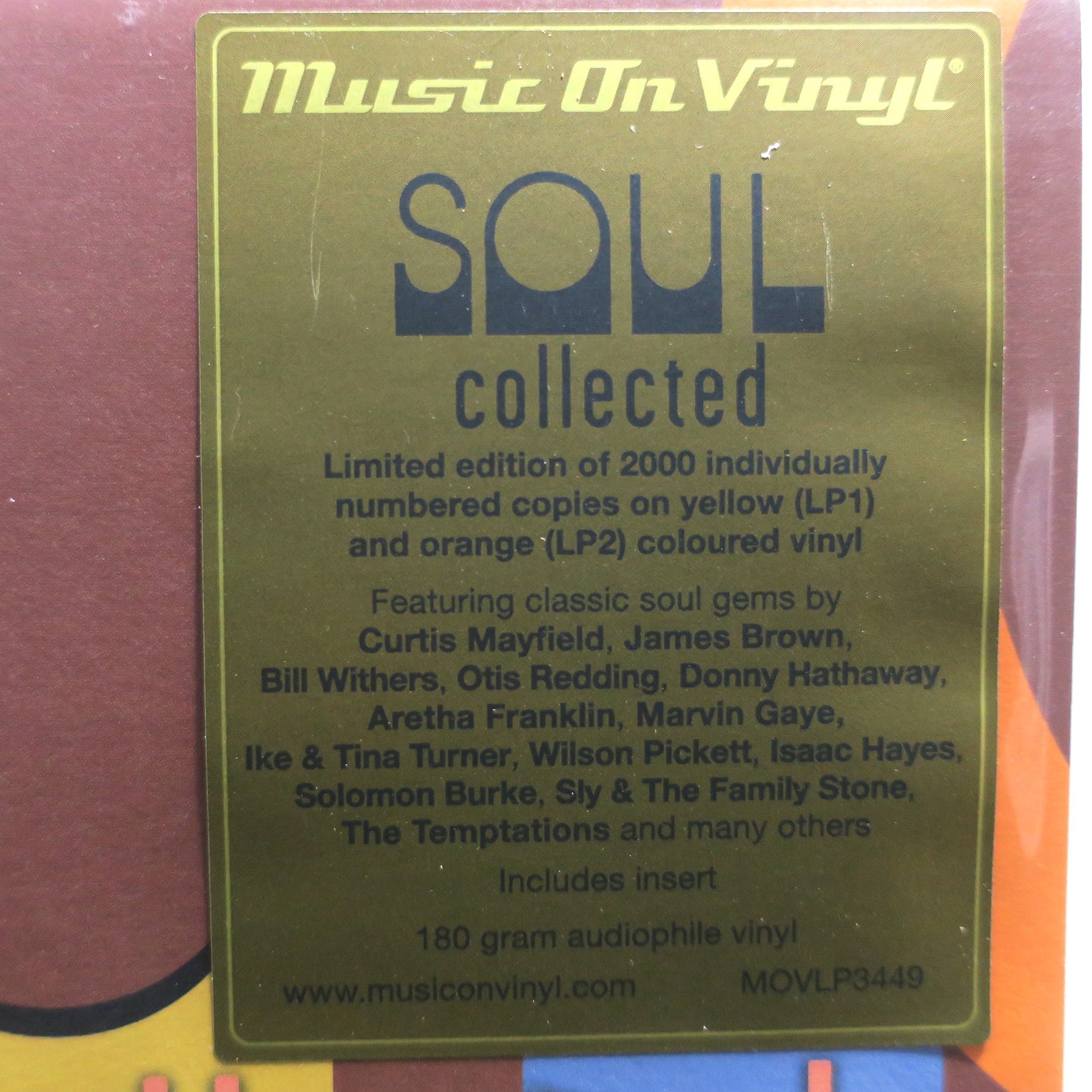 VARIOUS 'Soul Collected' 180g YELLOW/ORANGE Vinyl 2LP (Curtis Mayfield James Brown Bill Withers Marvin Gaye Otis Redding)
